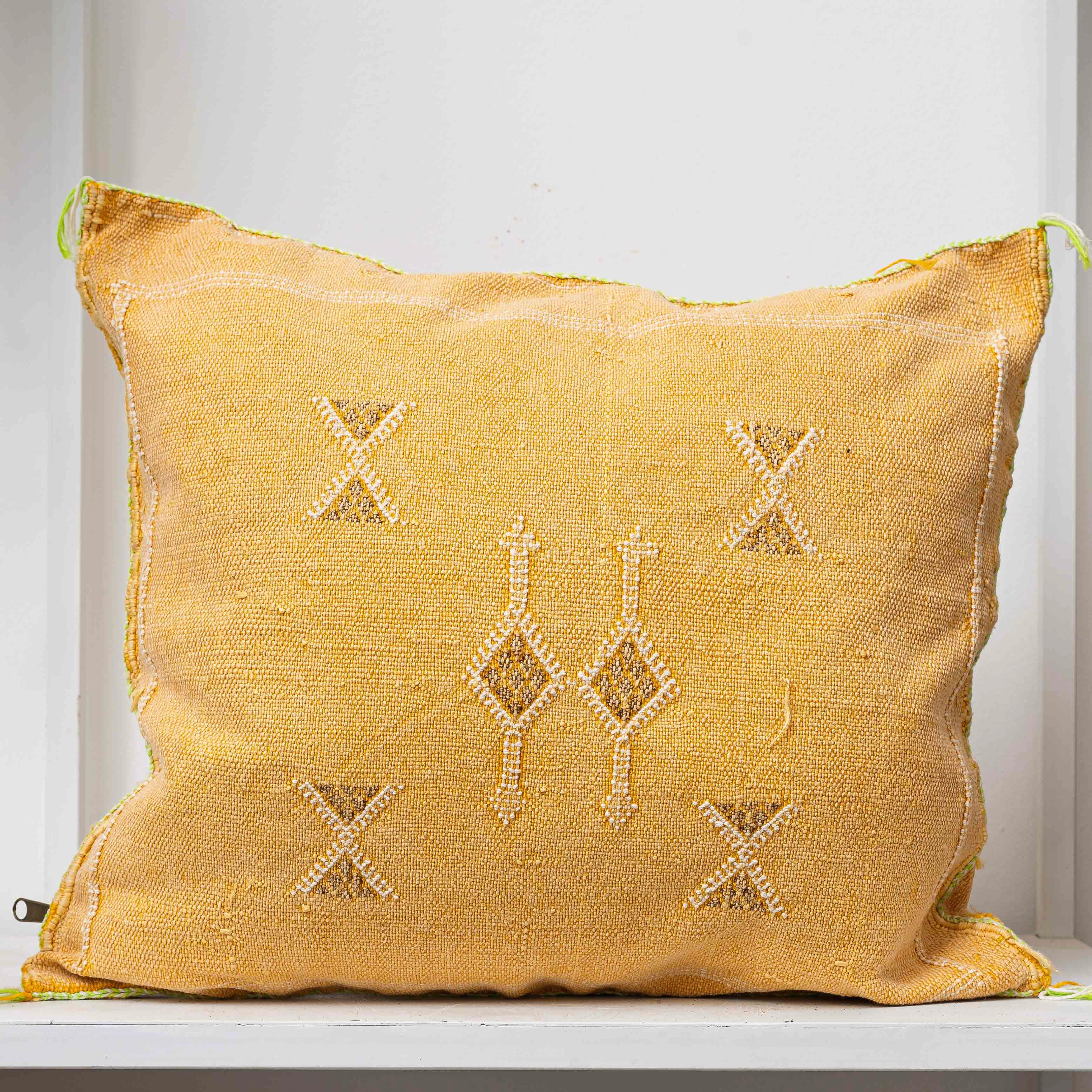 כריות סברה מרוקאיות זה פריט מושלם לשדרוג כל פינה בבית. שילוב חוטי משי קקטוס אורגני בדוגמאות גיאומטריות מהממות בעבודת יד. פריט זה נצבע בצבעים טבעיים. אנו ממליצים על ניקוי יבש בלבד.