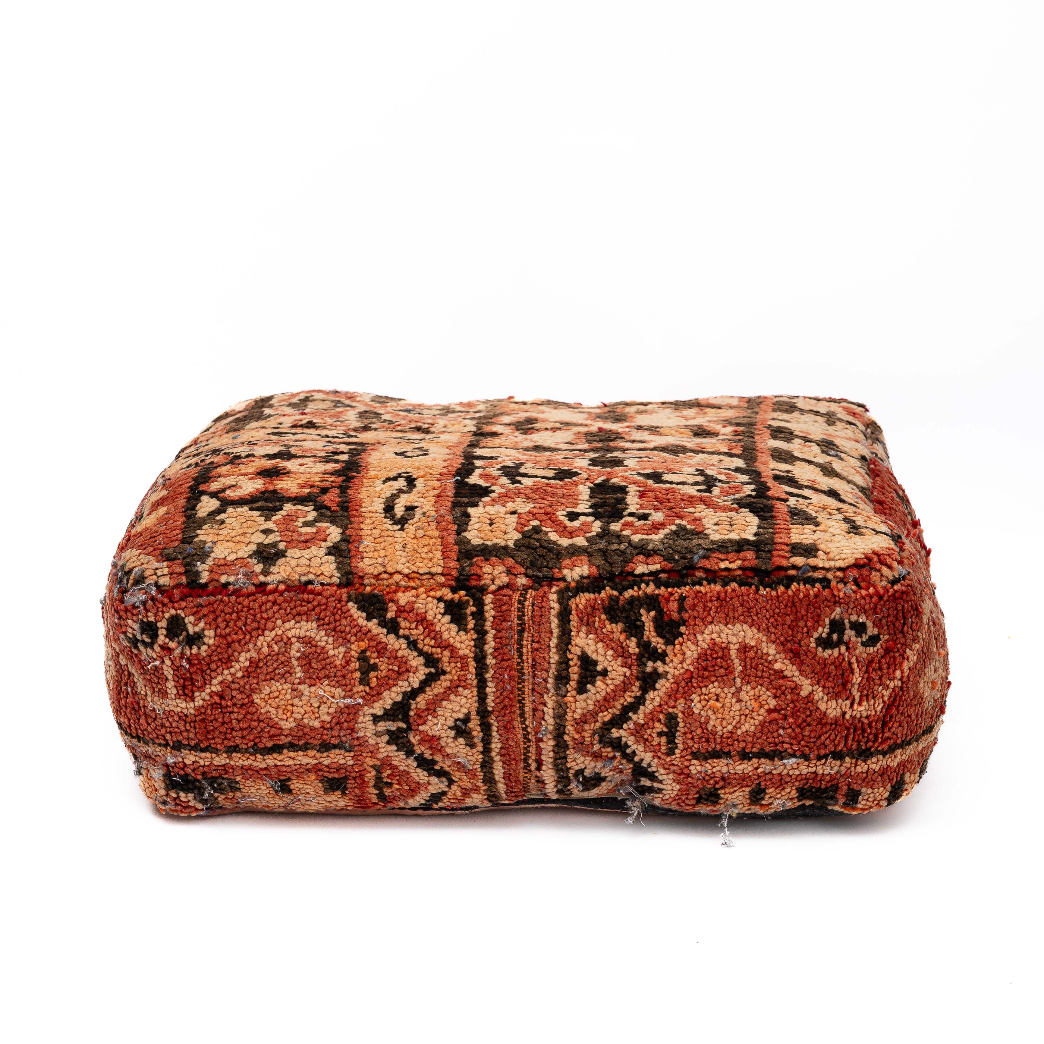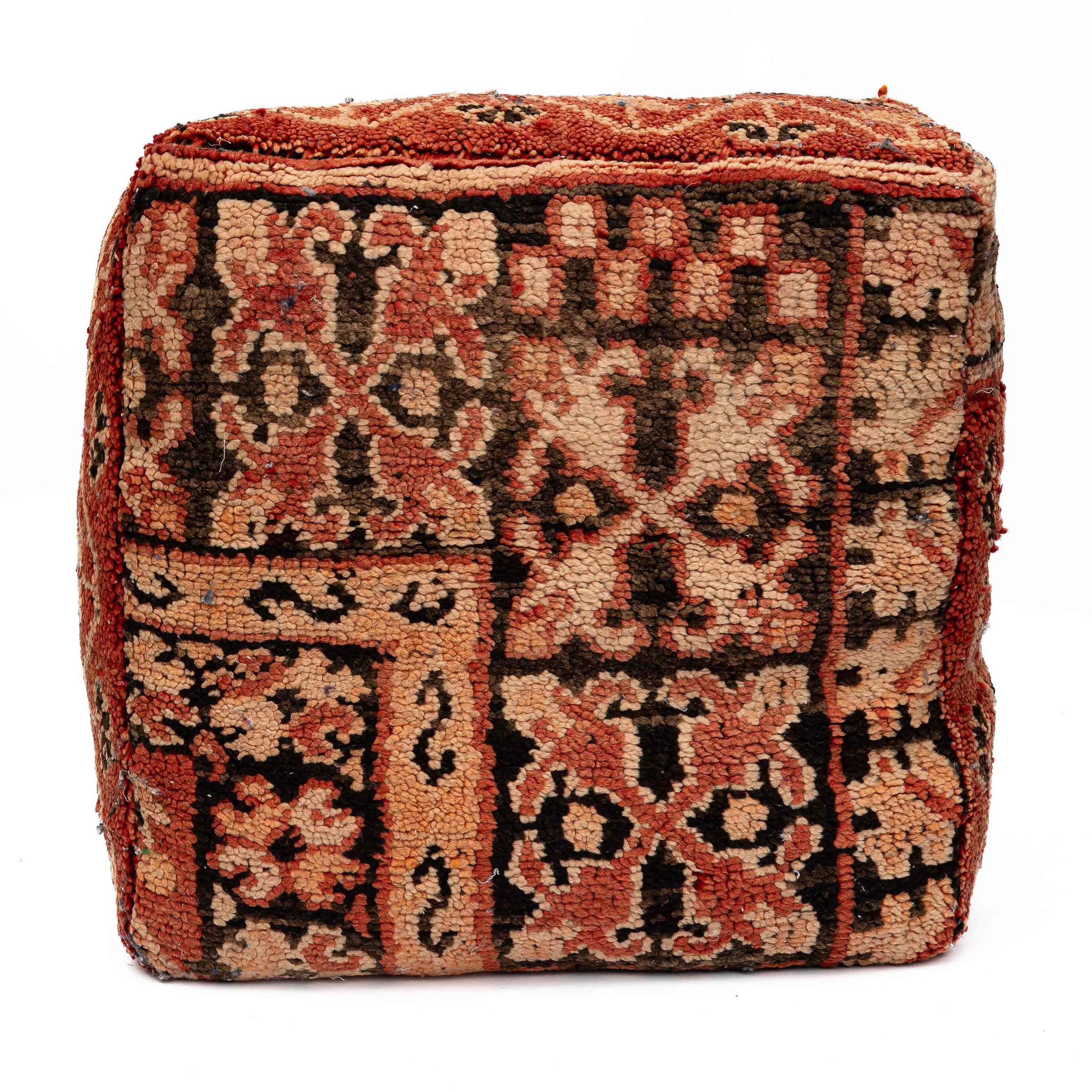 פוף מרובע עשוי מצמר טבעי, בעבודת יד מסורתית של בעלי מלאכה מרוקאיים. לכל פוף דוגמה משלו, טקסטורה שונה ועבר ייחודי — מה שהופך כל יחידה לפריט חד־פעמי שמכניס חום, צבע ורכות לכל חלל.